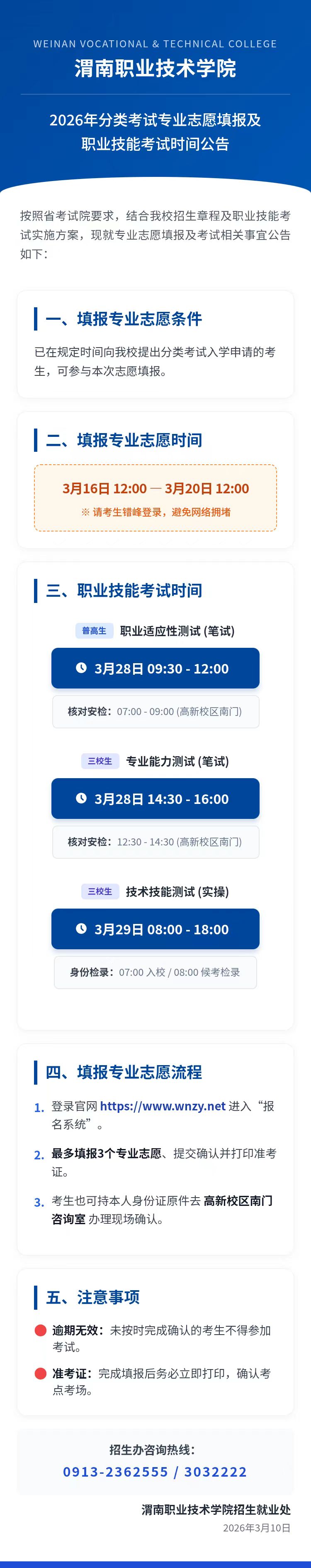 2026年分类考试专业志愿填报及职业技能考试时间公告